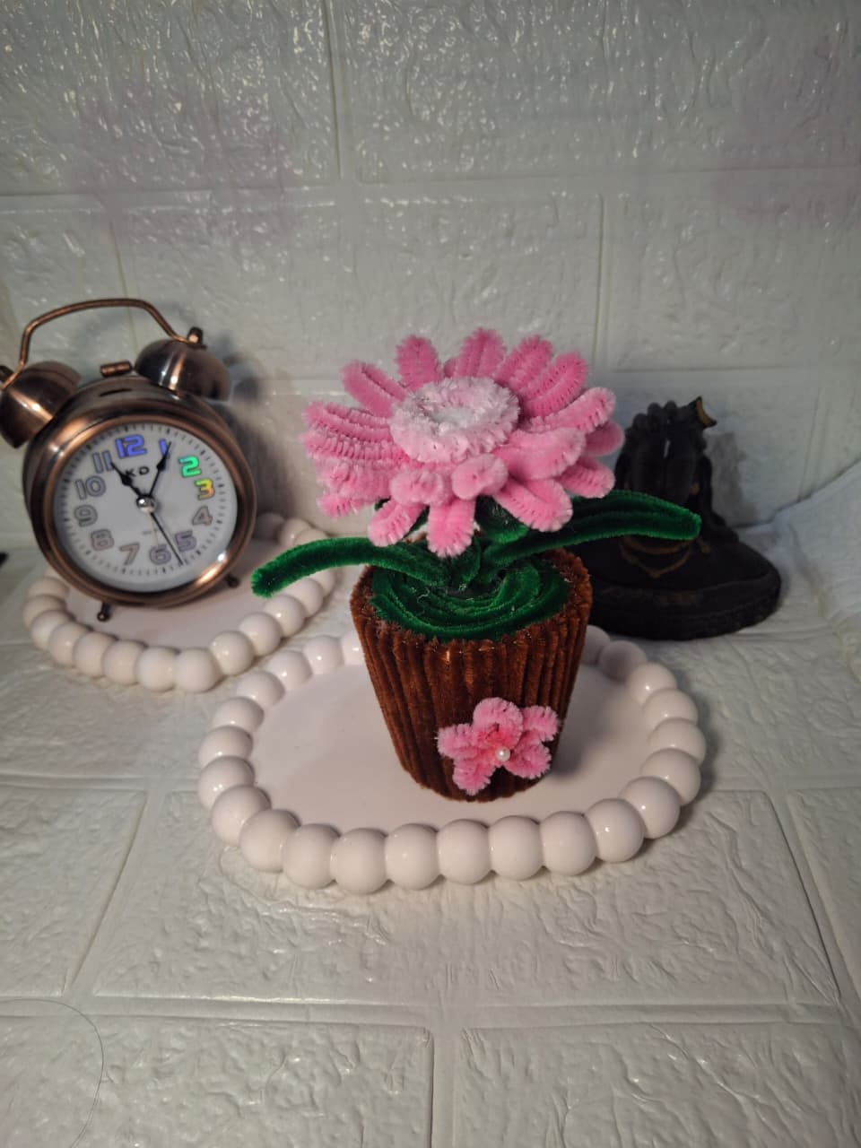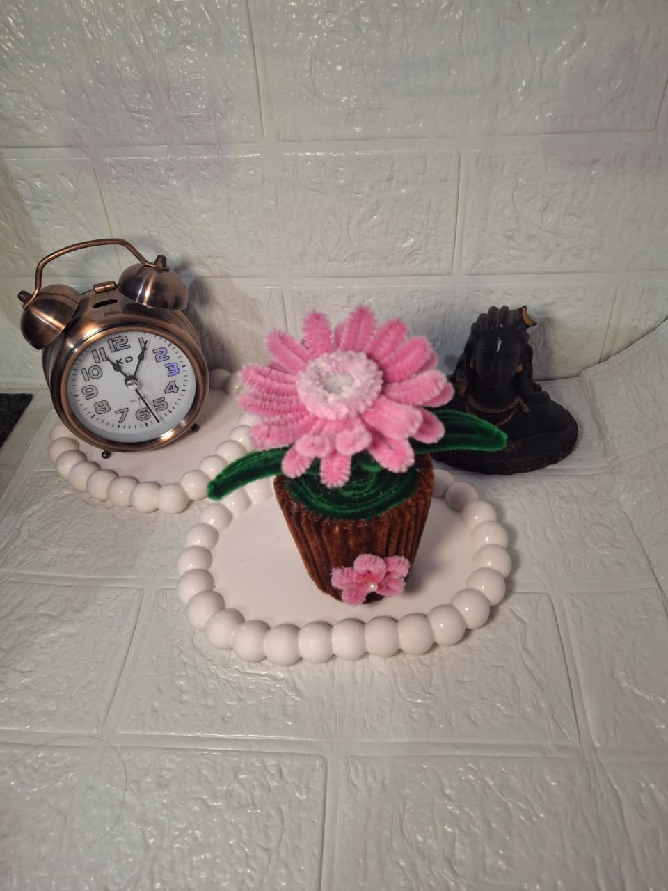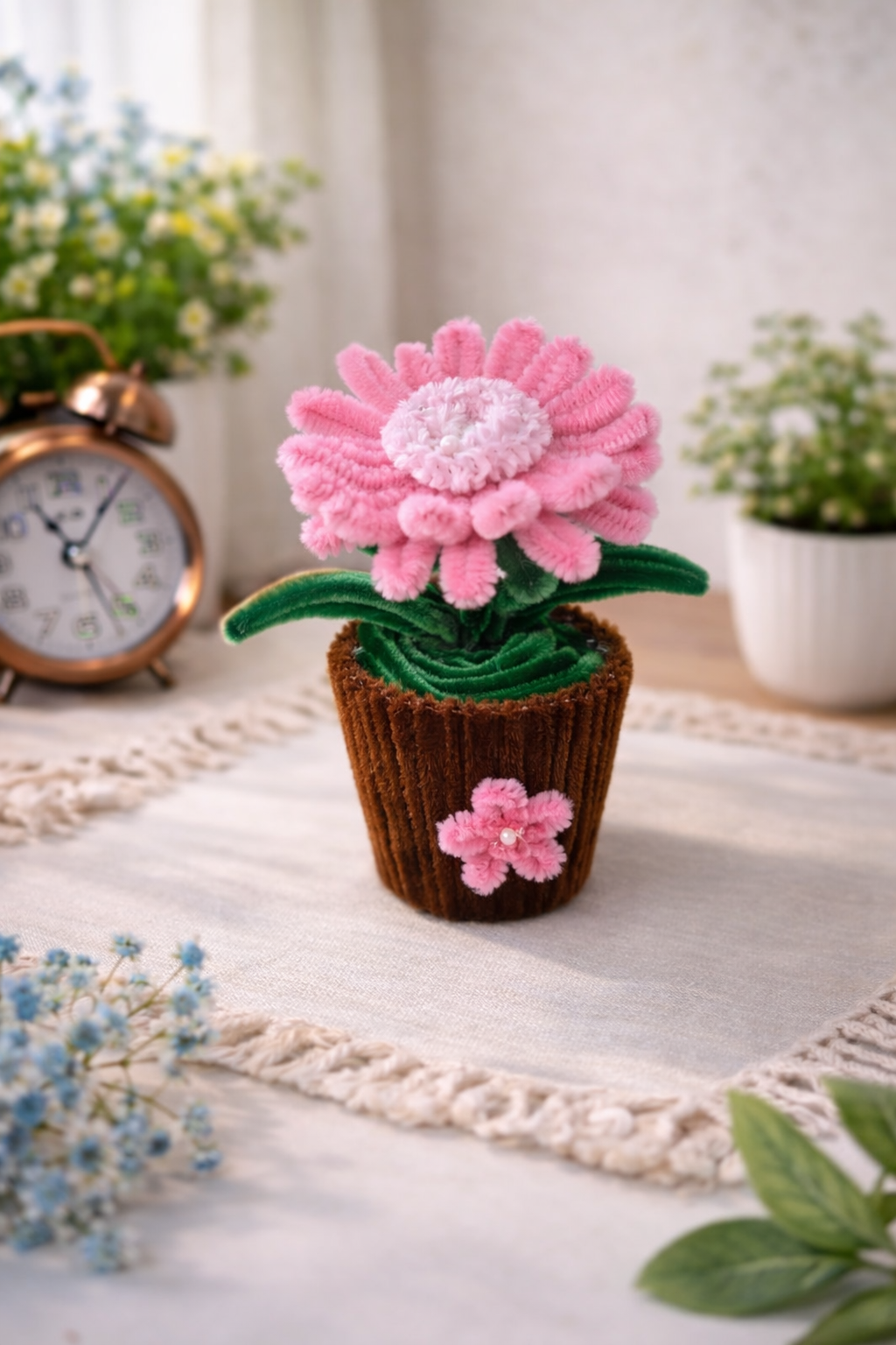 Add a soft and elegant charm to your space with this handmade pink daisy mini pot décor by Adorn by Riti. Carefully crafted using colorful pipe cleaners, this delicate pink flower arrangement sits in a textured decorative pot, creating a beautiful and artistic décor piece.
