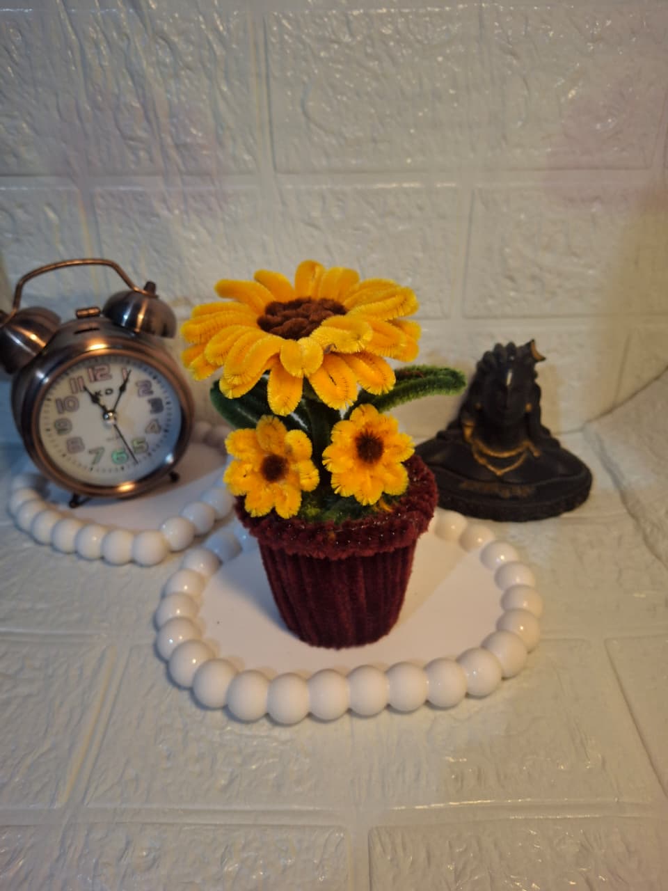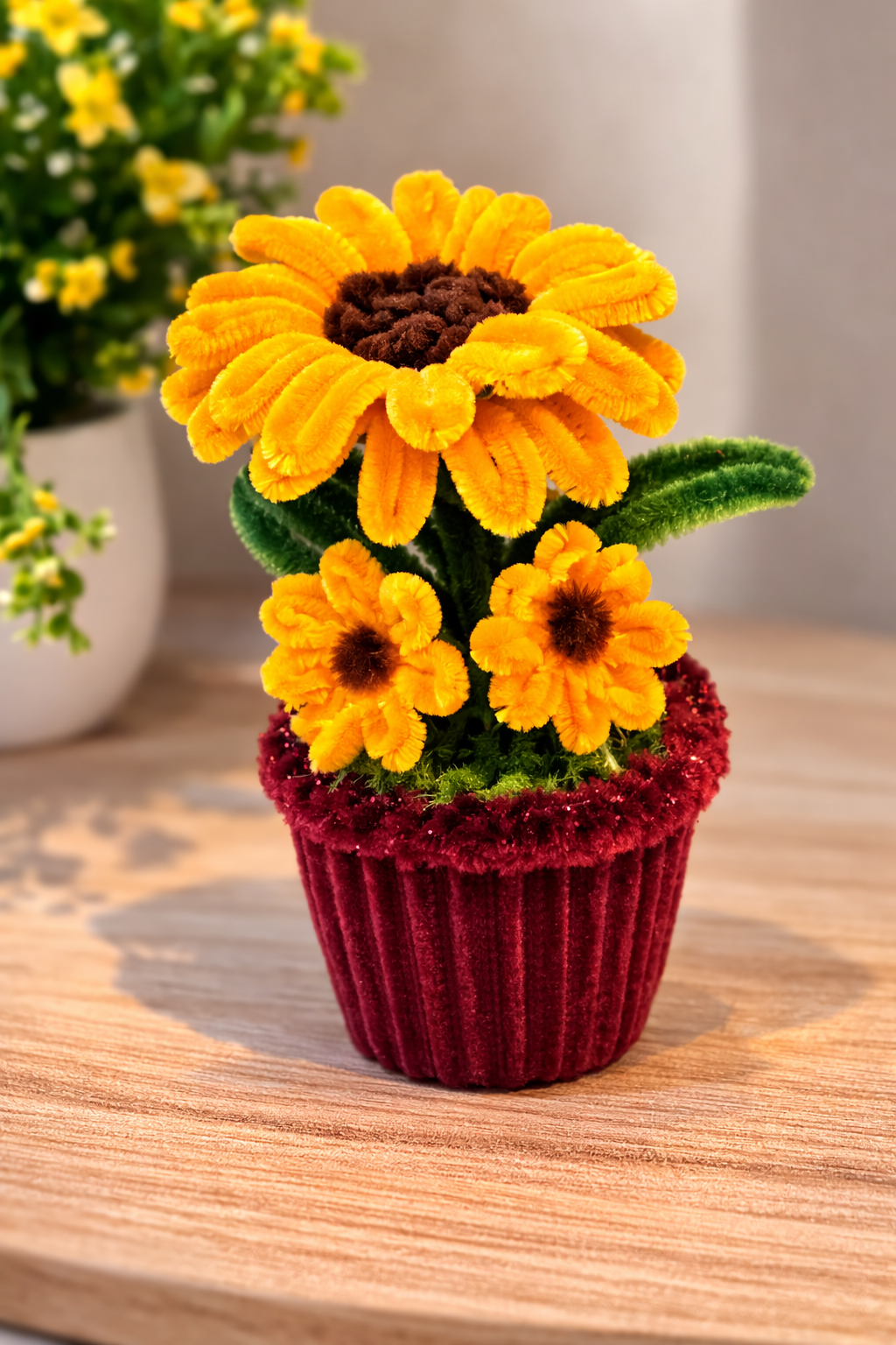 A small handcrafted sunflower pot that brings warmth, brightness, and creativity to your décor.